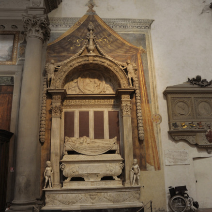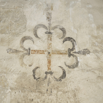 Kittung des Putzes und farbliche Integration von Fehlstellen (Retusche) der freigelegten, dem Grabmahl zugehörenden freskalen Baldachinmalerei (15. Jh.)