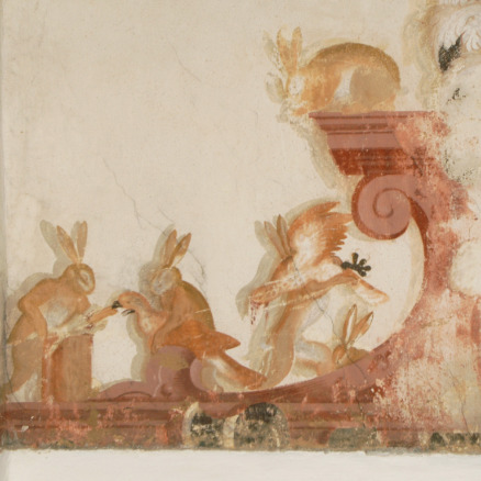 Freilegung, Konservierung und Restaurierung von bauzeitlichen Befunden im Sommerhaus, Putzkonservierung in der Schleppesse im Küchenhaus, Konservierung sowie Konservierung von Wandgemälden im Hasenhaus, Sicherung von Befunden im Südflügel