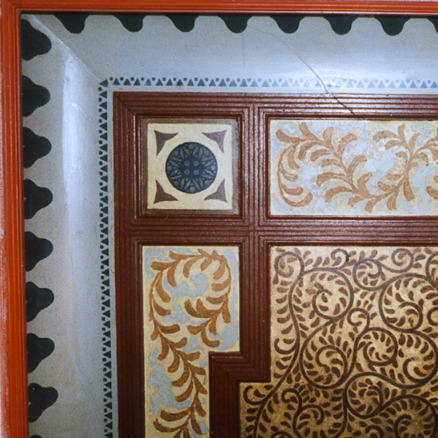 Untersuchung der historischen Farbigkeit, Dokumentation, Rekonstruktion der historischen Wandfassung (um 1850) Freiberufliche Mitarbeit bei Gramann und Schwieger Restauratoren GbR.
