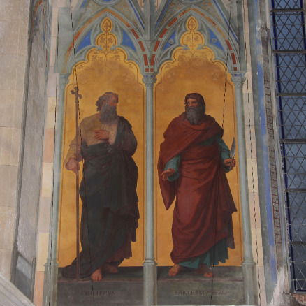 Ausführung einer Musterfläche an zwei Apostelfiguren und der neogotischen Ausmalung an der Südwand des Chores (Entwurf: Carl Gottfried Pfannschmidt und Friedrich August Stüler, 1857-1863) zur Erprobung von Materialien und Technologien, Weiterentwicklung der Konservierungs- und Restaurierungskonzeption als Zuarbeit für die Ausschreibung zur Konservierung und Restaurierung der Wandmalereien und der Architekturfassung im Chor, Schadsalz- und Materialanalysen, Dokumentation. Ausführung in Arbeitsgemeinschaft mit Dipl.-Rest. Christoph Gramann (Lenzner und Gramann, Diplom-Restauratoren GbR)