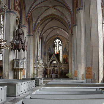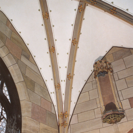 Konservierung und Restaurierung der neogotischen Ausmalung (1857-1863 von Friedrich August Stüler) an den Gewölben, Pfeilern des Mittelschiffes sowie an der Orgelempore, Dokumentation. Ausführung in Arbeitsgemeinschaft mit Dipl.-Rest. Christoph Gramann (Lenzner und Gramann, Diplom-Restauratoren GbR)