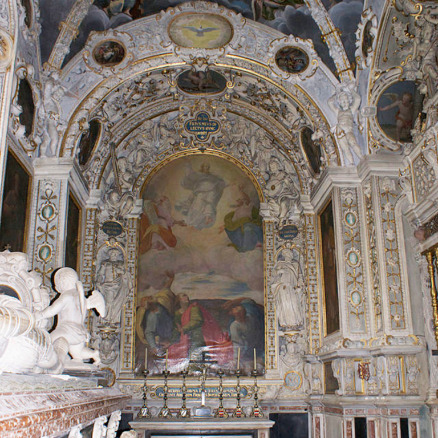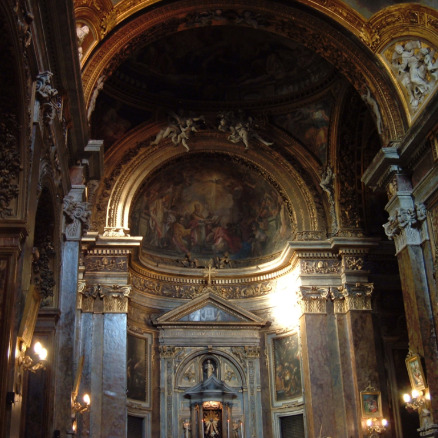 Festigung und Reinigung der barocken Wandmalereien (1656-1657) nach Entwürfen von Pietro da Cortona und den Dekorationsmalereien aus den Jahren 1811-13, Entfernen alter Kittungen und Retuschen, Kittung, Hinterfüllung von Hohlstellen des Putzes, Retusche
