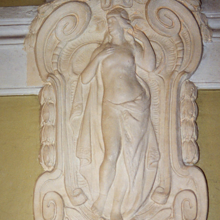 Festigung, Freilegung und Retusche von Stuckreliefs sowie eines Schablonenmalerei-Rapportes im Hauseingang sowie schriftliche und fotografische Dokumentation. Ausführung im Rahmen eines einjährigen studienvorbereitenden Praktikums bei der Senatsverwaltung für Stadtentwicklung und Umweltschutz, Berlin, Abt. Baudenkmalpflege