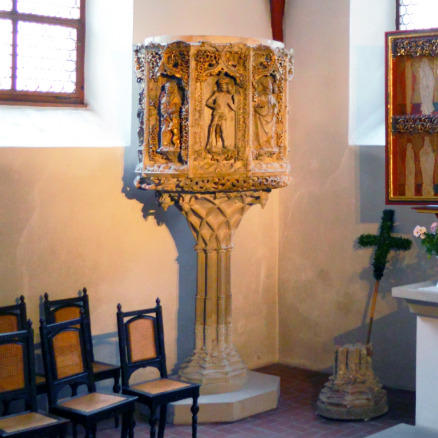 Freilegung und Konservierung der Kalkmalereien aus dem 15. Jahrhundert. Freiberufliche Mitarbeit bei Dipl.-Restaurator H.-H. Bär.