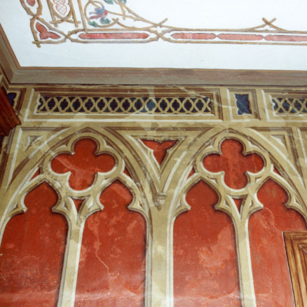 Kittung und Retusche der abgenommenen und replatzierten neogotischen Wandmalerei. Freiberufliche Mitarbeit bei Dipl.-Restaurator H.-H. Bär.