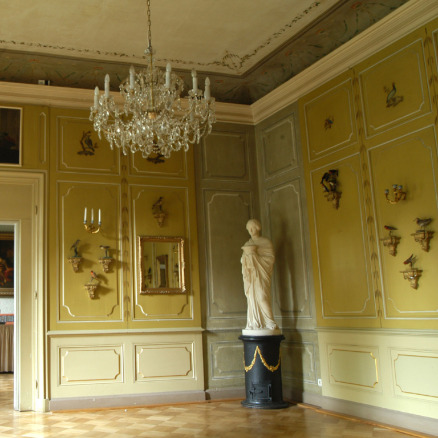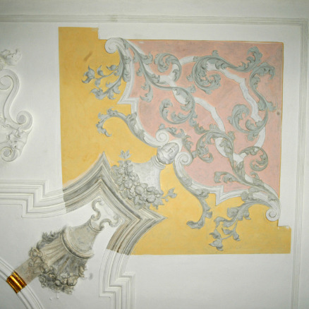 Farbstratigrafische und bauarchäologische Untersuchung, konservatorische Schadens- und Maßnahmenkartierung, Erarbeitung einer Konservierungs- und Restaurierungskonzeption, Erstellung von Ausschreibungstexten mit prozentualer Mengenermittlung als Zuarbeit zur Ausführungsplanung, Kostenberechnung für Konservierungs-, Restaurierungs- bzw. Rekonstruktionsarbeiten zur Präsentation der klassizistischen Raumausmalung (vermutl. zw. 1794-1817), Dokumentation. Ausführung in Zusammenarbeit mit Diplom-Restauratorin Sonja Kaeten.