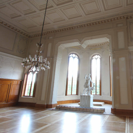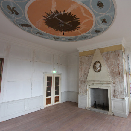Restauratorische Sondierung, Erarbeitung einer Konservierungs- und Restaurierungskonzeption, Anlegen von Musterflächen für eine Leistungsbeschreibung zur Konservierung und Restaurierung der klassizistischen Raumausmalung an der Decke und am Kamin, Dokumentation. Freiberufliche Mitarbeit bei Gramann und Schwieger Restauratoren GbR