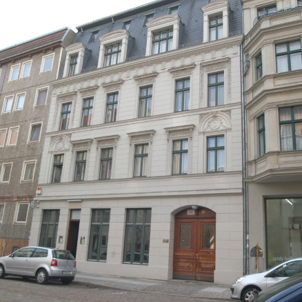 Befunduntersuchung der historischen Farbfassungen an der Fassade, der Tordurchfahrt sowie im Treppenhaus, Freilegung von Teilbereichen sowie schriftliche, zeichnerische und fotografische Dokumentation. Freiberufliche Arbeit im Rahmen eines Praktikums bei der Senatsverwaltung für Stadtentwicklung und Umweltschutz, Berlin, Abt. Baudenkmalpflege