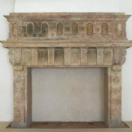 Sondierende restauratorische Untersuchung in Bezug auf die ursprüngliche Farbigkeit des Kamins aus der Renaissance im Raum 2.06 (Saal) des Sommerhauses, Kostenschätzung für die Freilegung des Kamins